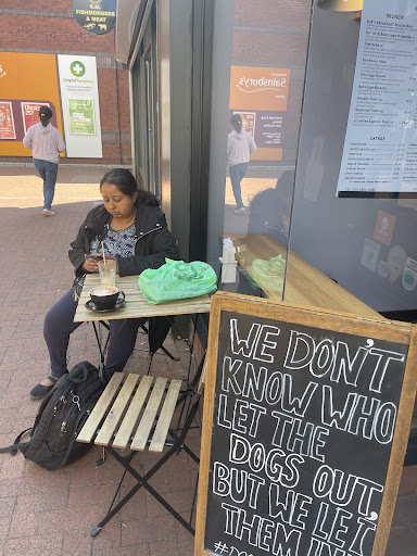 Read moreI came to this cafe with a friend to have a coffee and I just starting to have a 1/2 yogurt with cake with me which I was having while I drink my coffee and I was told that the policy of the cafe is not eating inside of the premises food from somewhere else . Please see the picture is it inside the premises ? Very rude person . This table is actually in the halloway. Customer service is poor as counter was very argumentative saying that I shouldn’t eat inside premises in front of other customers. Very Bad experience in a day out with my best friend . Never ever will comeback . No one will force me to buy food if I don’t want it . I pay council tax to eat in the street if I want it Just don’t want to argue with people with lack of happiness in doing their job . Off to drink a none tasty coffee, full milk to be...