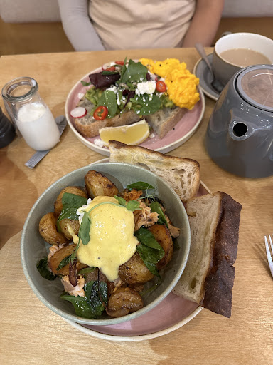 Read moreWould love to be able to give them more stars as the cafe is really cute and could be nice. Not sure what happened but we must have gone on a bad day as all the other reviews are very positive. Couple of things. I paid £12-13 for the tiniest salad I've ever seen. It came in a small shallow bowl on this big plate. I had 4 mouth fulls and was done .. sorry but that's an absolute rip off. My friend ordered poached eggs and a side of halloumi. The waiter told her 5 min later that there wasn't any halloumi left which was fine but then came with a plate of halloumi after she finished her meal (??) My friends poached eggs were hard boiled and when we told one of the staff about it she apologised and then just put a random cake in front of her. It would be nice if she could've asked if my friend maybe wanted a coffee/drink/cake or something as an apology. Just on a side note, the vegan options aren't great. Would be nice if you could...
