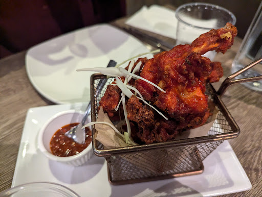 Read moreNoisy and found the place not clean and not welcoming or friendly atmosphere.Food was OK arrived not hot temperature wise only hot was the hot ans sour soup.Ordered vegetarian version got meat so had to wait.Plus the soup was very spicy and not sour.Have had loads of hot and sour soups but this one not up to level.Loved the crispy Bhindi and the chicken wings.Did not like the Kashmiri chili Kebabs not nice, we're not moist and no onions and very less salad served with it.Won't visit again.Parking is a nightmare.Did not feel safe in the area.Booked online with specific request of parking didn't even get a reply.Wanted to order mains but left after starters and went to another resturant for mains.Had passion fruit juice was watered down at 4£ for a glass .High price and not value for the prices charged.From the website shows they have more branches but since this one was a disappointment don't think others will please.Toilets were not clean and smelled.Management needs to pull...