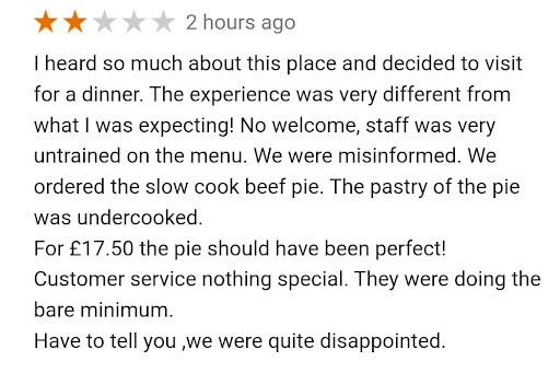 I find it difficult to provide a rating for this service, as the images below illustrate the ignorance and condescension displayed by the head of staff. My mother submitted an honest review regarding our experience, which the head of staff seized as an opportunity to belittle us and assert dominance over the customer. In my role within the hospitality industry, I prioritize making customers feel safe and comfortable, regardless of their feedback; I do not dehumanize them when they offer constructive criticism. Unfortunately, this cannot be said for a high-end pub in Mayfair. The behavior exhibited by the head of staff was appalling, and such an attitude is unfit for someone in a leadership position. I could sense this negativity even through a screen. As a representative of a well-known establishment like Stonegate, the manager's demeanor was particularly disappointing. I witnessed firsthand the staff's nonchalance. The bartender exaggerated the quality of a meal that was served partially uncooked (as shown in the picture below). She claimed that a bone was included in the pie to enhance tenderness, but when we received it, there was no bone present. As someone who has worked there for a while should have been up to date with how the food looks and is presented. While there may have been some indication of a bone, the dish would have been more visually appealing had it been served with one thats why we ordered it in the first place (as depicted in the picture below). Additionally, the waiter who brought our food seemed completely unaware of whether the dish was supposed to include a bone. Meaning we were misinformed twice. This is evident from the security footage, where we can be seen discussing the plates with him, gesturing towards where the bone should have been. However, this review is not solely about the missing bone; it highlights the staff's lack of knowledge regarding basic menu items. Moreover, the rude and patronizing language used by management in response to innocent feedback is unacceptable. Ultimately, I can only convey my experience; I cannot comprehend it for you. I envy those who have not had to engage with the head of management! I typically refrain from writing reviews, as I rarely have negative experiences and prefer to avoid confrontation, so we generally do not make a fuss. Although we were quite hungry and had already waited 25 minutes for our meal, we understood that changing it would take an additional 30 minutes, which we could not afford. As a result, we chose to accept the meal as it was. Given the price of £17.50, we expected a higher standard. The reason I addressed this matter was due to the inappropriate response my mother received when she provided her feedback, which I found to be quite unfair. I believe that feedback is vital, as it allows individuals to share their experiences candidly without facing humiliation. I encourage anyone who reads this to consider this perspective. I am not here to argue or be unkind; I am simply expressing my honest feelings about the situation and its impact on both my...