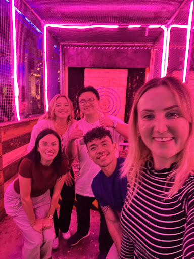 From the moment we arrived, the atmosphere was buzzing with excitement. The vibrant decor and energetic ambiance set the perfect stage for a night of competitive fun. We were particularly eager to try our hand at axe throwing, something none of us had done before. Thatâs where Vasi truly shined!