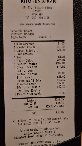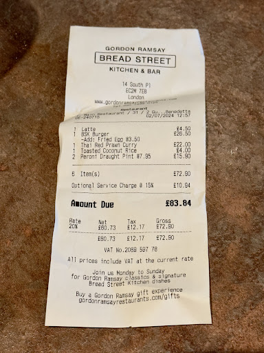 Bread Street Kitchen is a decent option for a power lunch in the city. The service is excellent, and the atmosphere is comfortable and modern. However, the food itself could be a bit more impressive. If you stick to classic dishes, you might have a...