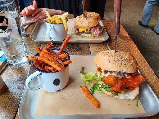 Read moreI like BrewDog and they have a great range of beers to satisfy all I presume, as I only drink lager anyway!!! I went for lunch and have to say that although the staff are very nice and polite they are not very on the ball. We wanted to eat and asked what we needed to do about a table? The guy whom I guess was the equivalent of a maitre d said that there were people with their names before us and it would be a wait. I said but there are boths that can easily sit 6 with only 2 people in them, he said if you want to ask if you can share go ahead, so I did and we were seated instantly. Doesn't take a genius to work out that when there are people waiting you should tell diners that they need to share! So to the food, I had the buffalo chicken burger with sweet potato fries and my colleague had the burger with bacon and cheese. My chicken burger had a decent amount of chicken in it but unfortunately it just didn't have much taste and therefore a bit disappointing. My colleague liked her burger and said it was tasty but as I didn't get any so can't comment. However, I did note that it was well done where I prefer my burgers to be medium e.g. pink in the middle! My opinion, the food looks better than it taste unfortunately...