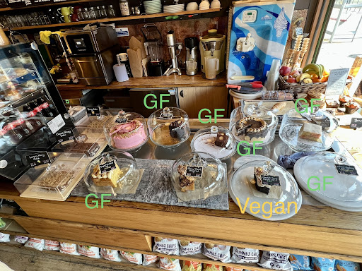 The cafĂ© have always been very good with their procedures to limit contamination - they have separate cloches and knives for the gluten free, wheat free, vegan and dairy free cakes. There were some missing labels yesterday, but theyâre usually very good with labels so Iâm sure theyâll get back to their usual high standard soon!
