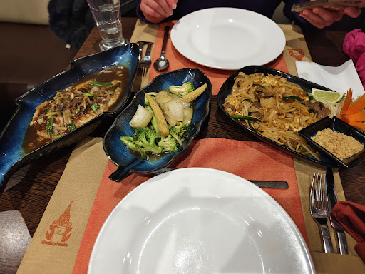 Read moreFelt quite disappointed, I was really excited when I found out a Thai restaurant has opened in the area. Unfortunately, the food was not really up to standard. The starters - Mussel was cooked in just water, wish there was more spices in it. Spring rolls was average probably from frozen, also had the Thai fish cake which was nice but received the same dipping sauce (sweet and sour sauce) for all the starter we had. Usually fish cake comes with a different kind of dipping sauce. The sweet and sour sauce was like from a bottle but it was watery probably added water to make it a watery texture. Prawn crackers gave a very weird after taste. The pad Thai was probably the worst I’ve eaten, the noodles was not cooked properly it was hard and there wasn’t anything much in the pad Thai. Not a single vegetable in it. Just noodles and chicken. I’ve grown up in Thailand and I’ve been to some nice Thai restaurants in London but unfortunately this one was disappointing, but you might like it so do give it a try. I thought that if the food was pricey, then it should be cooked in high standard too but it wasn’t. On a positive side, the Indian waiter was very friendly...