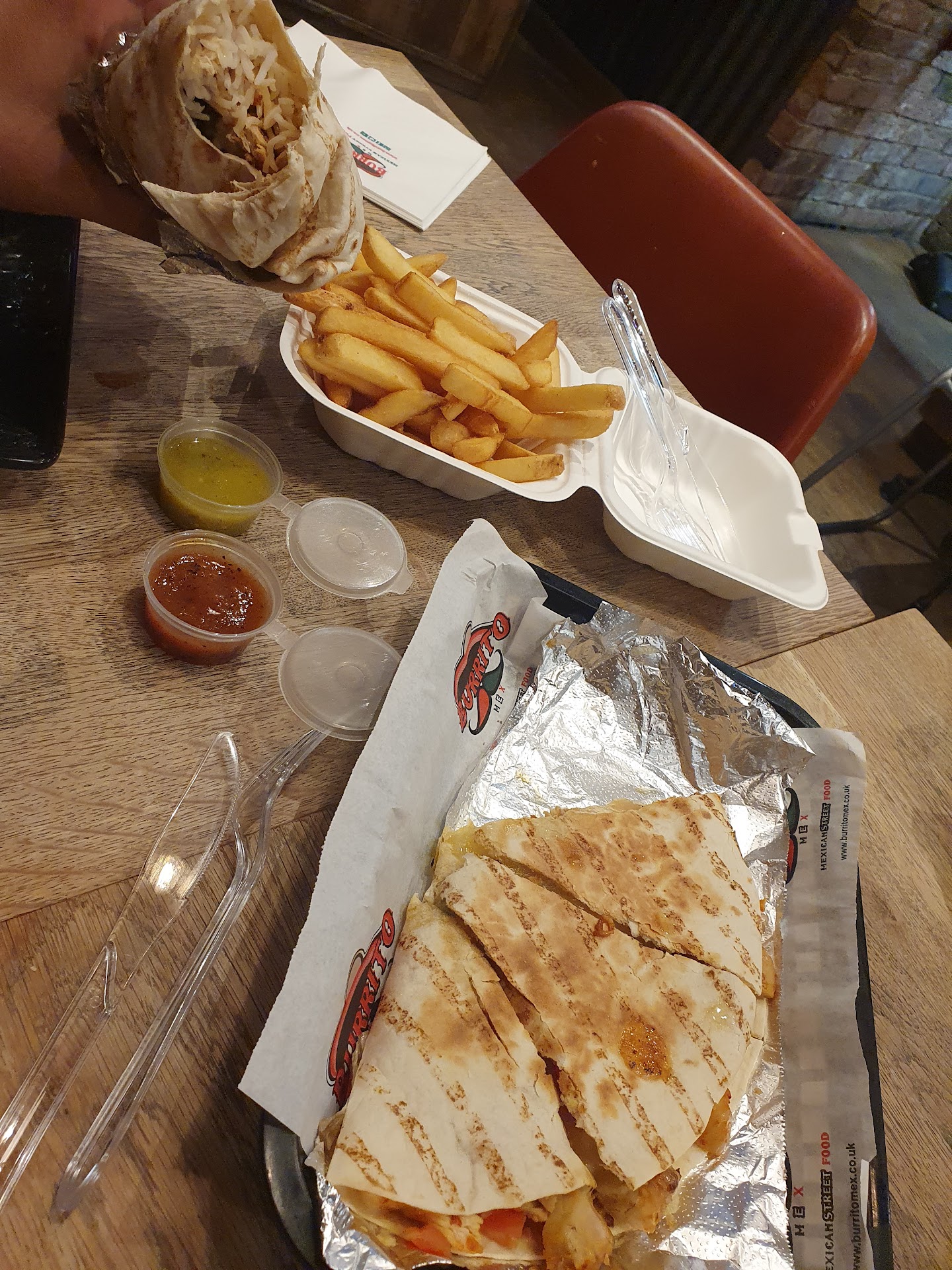 But instead I got served by the skinny man Who decided that because I’m a slim female i won’t eat that much (even though I bought the same LARGE size) so he only gave me a little bit of filling in my large burrito wrap!