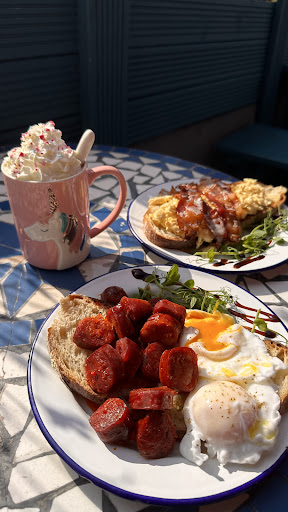 The breakfast menu is varied and delicious. I sampled the poached eggs and scrambled eggs with chorizo and bacon, both of which were cooked to perfection and bursting with flavor. For those with dietary preferences, the cafe also provides a range of vegan options, ensuring there's something for everyone.