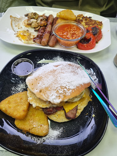 Took me so long to decide what to eat as everything I saw on the other customers tables looked good and the menu is very extensive. I finally decided on the Halal half breakfast pancake bun with a side of hash browns and a cup of Earl Grey. I spend a lot of time in the States and was really hoping to finally find somewhere over here I could get a good American style breakfast. I was not disappointed!! The portion was big (considering it was the half), the food was cooked well and very tasty! It was very busy (probably testament to how good it is) so service was a little slow, but it was worth it! Staff were helpful & patient when I asked several questions and considering how busy they were, they were very friendly. Looking forward to my next...