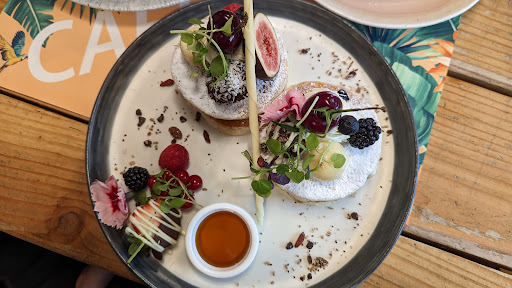 One thing to bear in mind, we visited on a Saturday at 13:15 (group of 3) and it was BUSY! If visiting in a couple or groups of two you may find you will be seated sooner just because the tables at the front are arranged in sets of two's. They do have 4 tables of 4 at the back which is where we were seated. The tables at the front of the Cafe are quite close together so when it's busy it can feel a little cramped. We waited about 10 minutes outside for a table as we were fist in the queue however when we left at 15:30 there was a long line of people waiting outside. This place does not take bookings so be prepared to wait during busy periods.