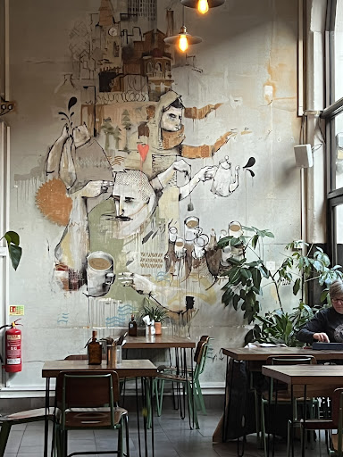 Read moreI went here with my girlfriend for a coffee and cake on a Sunday afternoon. The coffee and cake was ok but nothing to write home about. Maybe I'm getting a little old (30) but I think the music was too loud which meant we really couldn't have a conversation. This didn't seem to be a problem for the majority of people here, the hipster crowd, who come here to use their laptops (probably writing their blogs about living in the east end) and taking photographs of other people using their laptops (?). Obviously this place was not to my liking, however I had an hilarious exchange with the waitress. I went into to the men's toilets and was immediately hit with the odour of S*. I poked my head into the cubicles to find BOTH toilets were backed up and covered with toilet paper and filth. Fortunately I only had to use the urinal so I did my business and left. I thought I'd do the right thing and mention it to the waitress cleaning up the glasses. The music was loud and she was not a native english speaker however the exchange went like this: Me: "Hi, just letting you know that the men's toilets are very dirty." Waitress: "Yes, they're just over there." Me: "No, the toilets are filthy" Waitress: "Yes I know". Me: "The toilets are disgusting. They smell like S*."