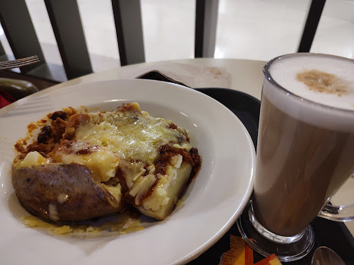I went to order a regular iced latte and 2 shots of caramel syrup which would have come to £5.65 according to their menu as the coffee costs £3.45 and the added shot was £1.10 each. They then asked me to pay £9.10! I was very confused and asked why it was so much as it is a lot more than what is advertised. I was met with hostility and they just thought it was normal that an iced latte would cost nearly as much as their main meals offered. The staff just were not understanding the math, and the lady who put the order in the till must have put in something wrong. After 5 minutes of hostility and going back and forth, it was clear that these two workers cannot do basic addition even with the help of a literal giant calculator with all the products and prices on in front of them. Perhaps a few year 2 maths lessons are in order during the staff training.