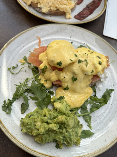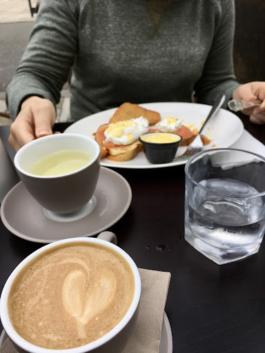 I ordered a flat white coffee ☕️ brownie, with vanilla ice cream. My friend ordered eggs royal and green tea. I was informer about the brownie: (They had to check if they have just in case, and not sure if they had vanilla ice cream). I said ok check it out, thanks. After a while tap water arrived with a tea for my friend. BUT my coffee was missed. I didn’t say anything, they looked busy and I thought probably know what they were doing. Then eggs royal came. My coffee was nowhere. So I asked. They said it’s on the way. The food was already on the table without cutlery. Hmmmm... My coffee finally arrived. It was pretty good. high five for the barista. 😎