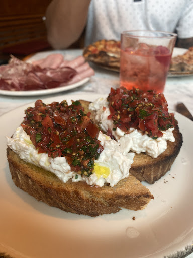 Read moreA beautifully designed restaurant and bar at the top end of Camden, a stones throw away from Mornington Crescent station or short walk from Euston. Itâs placed down the side of Kokoâs and probably unnoticed by many due to its unassuming entrance. The outside menu displayed mostly pizzas and came across as very Soho House-ish (ie simple, not too fancy but with good produce). Stepping inside was also very Soho House-y. Great artwork, a mesh of beautiful wood, velvet and marble materials inviting you in to have a comfortable, but stylish time. The menu outside was different to the one offered. This new menu, as we found out shortly after, had been live for a couple of days and offered more than just pizza. I opted for some cured meats and bruschetta which was topped with ricotta. It was fresh and delightful. My partner had a simple margerita style pizza which he enjoyed. We shared some cured meats which werenât explained to us when delivered but mortadella and bresaola were two out of the three. The third was sliced a milimetre too thick but delicious none the same. It lost a star for the lack of ambience which was not there doing. This stunning spot may pick up on gig nights and weekends but felt a little dead when we went in. The service was good bar a little event of having water spilt everywhere by the waitress but not a big deal - accidents happen! It was more her nonchalance and approach to other tables which I felt could have done with more of a caring touch. Just a personal observation and she was friendly and polite enough with us. The management and bar team were equally as attentive and friendly. We finished on a Bloody Mary which was extremely acidic and watery. It could have done with more body from a thicker tomato juice which would have been much better. Will definitely return if in that...