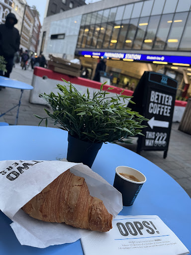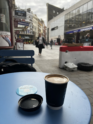 Read moreDecided to grab a quick coffee outside of Farringdon station and stumbled upon this place. My intention was to walk to Leather Lane area but found this spot, which was a bonus as Iâve not been here in a long time. I decided on a large Americano with oat milk: ÂŁ3.05 all-in. My experience with those staff was excellent and my beverage was served to me promptly. My coffee was hot and to my liking. I decided against a pastry but from a price point, this does seem like good value; especially for this part of London. I mean look at the size of those pastries! I would...