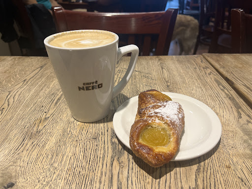 Read moreNever have an issue with this place when ordering through an app, but visiting is often unpleasant. Most of the staff are lovely, but the young lad with the brown hair and goatee who frequently works here is rude on a consistent basis. Even when you're the only person in line he seems incredibly impatient, to the point where neither my partner nor I feel welcome to purchase more than a coffee (as whenever I order a cake or a croissant he seems annoyed - shoving them in a bag and dropping them on the counter in front of us like we're wasting his time). He doesn't answer to niceties, and once you've paid he immediately turns to the person behind you and asks them what they're having - rinse and repeat. He seems to slap on the charm when older women come in, however, and will pet name and converse with them openly. This unfortunately creates a further disparity and makes this particular Nero an immensely uninviting store to visit in person. I never enjoyed working customer service either, but the least you could do is "you're welcome" when someone thanks you, instead of blanking them. Shame as Nero's always been...