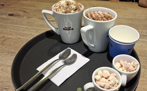We ordered two hot chocolates and a pain au chocolate and double chocolate muffin, which went down a treat, my blood sugars were getting low and the tasty treat topped them up nicely.