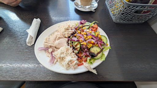 Ā Ā Ā Read morePopped in for a bite at lunch time, was greeted with a friendly smile, which is always a good start. Ordered a coffee while waiting for my partner to join me, wasn't rushed even though most tables were occupied. Opted for the chicken saladš„, nice and fresh and an ample portion, my other half had the chicken kebab and rice, again a good portion, and he said it was very nice, which is a very good compliment. Definitely a place I will be visiting again when I am working...