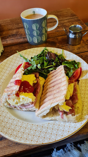 Hot and cold drinks served and healthy lunch options like the Italian ham and rocket 🚀 panini.