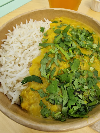 My review however is more of the canteen building and the surrounding area itself. Although interesting to look at, there are some serious design flaws for something at the centre of the "design district". The building is a glorified plastic greenhouse. It sweats and is unbearable in the summer and it has a persistently leaky roof when it rains, right into their upstairs seating area.