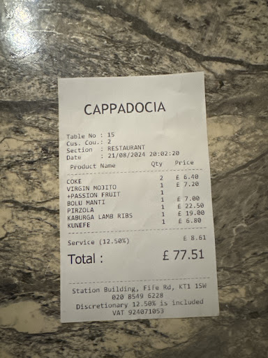 Visited first time. Looks good from outside and is set in a good location. Nice name of the restaurant and Turkish cuisine has some what of a reputation. Staff did approach us more than once but I took my time studying the menu. One of the staff had very good professional polite service - male. Another male also had good service. A female member of staff had alright service. But a female member of staff on one occasion took far too much time bringing a spoon. It was as if she did not want to bring it. And was not bringing the Kunefe as should have been bought but when she saw me being attentive then she bought it as it should be bought. Was offered a 20% off on our next visit by a male member of staff, who appeared confident and sociable. The restaurant was clean and presentable in terms of hygiene and tidiness and decor. I tried manti for the 1st time - do not know what the hype is all about. Tasted better without the cream on top. I tried the lamb chops with rice and salad (pirzola in Turkish) - I have tried this once before in our hotel in Turkey Istanbul. I liked the salad and rice and how presentable the plate looked. The salad combo was alright. Although the rice do appear little in quantity - it’s not that little when you finish your meal. The quantity of chops offered was not that bad - but I found the chops to be far too hard to cut. In Turkey I encountered the same issue. So as a Non Turk I do not know if this is how they are meant to made as standard or according to the chefs style. I tried the lamb ribs for the first time ever and I was not a fan of them. Far too salty for my liking. And generally I found that the lamb ribs do not have that much meat on them like the chops. The kunefe was decent - have had this maybe first time in the UK, but have had this in Turkey and Saudi Arabia. The presentation and the topping of pistachio with ice cream was decent and appeared appealing to other customers sat near us. Kunefe was also cheap in comparison to the other dishes. Was not that much a fan of the virgin mojito passion fruit. We also decided to pay the discretionary service charge - 3 out of 4 members of staff provided decent service. Out of which one was very good, one was good and one was as standard; one was not good. Ended up staying 2 hours here - at times felt that it took long to get staffs attention when the meal was finished and we wanted desserts - maybe they didn’t want us to leave - but also I did take my time ordering. I think they should provide rice with more of their mains. The steak and chip that is on offer on Wednesdays for 25£ was also appealing as the steak is 600 grams which is mammoth in terms of size and appeared very cheap and popular. Maybe other dishes are better than what we had but we cannot comment without trying them. As far as the steak price is concerned I am yet to find a place with cheaper and what appears to be from The outset a good quality steak. And there are good Turkish providers of steak. And the restaurants website does say that this restaurant has been open for 21 years. There were a lot of employees working. The restaurant was busy. But everyone were sat in one area rather than spread out - would have been better for comfort if we were not sat that close to the...