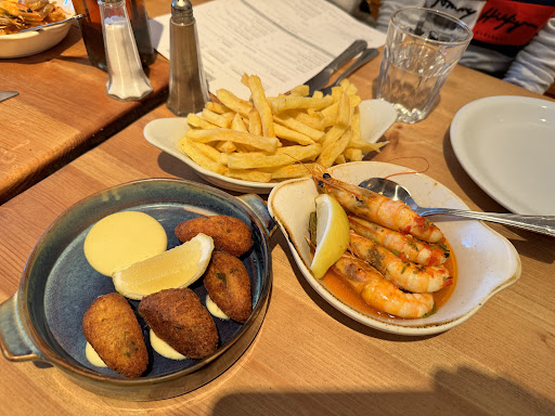 Read moreWe visited for dinner on a Saturday evening. This new location is a surprisingly large venue. We were a group of 3 adults and 2 young kids and between us ordered the prawns, bacalhau, 3 half chickens, 3 chips, green rice, garlic mushrooms and the cauliflower. We tried the chocolate mousse, pastel de nata and some ice cream for dessert. The food was generally very good. The main item - the chicken - was perhaps not as exciting as some of the side dishes though! While decent, it was a bit dry, and also much smaller than expected - not quite a baby chicken but not a regular size either. The accompanying peri peri sauce was excellent though, and we also really enjoyed the green rice and - surprisingly - the cauliflower too. Desserts were also very good, and I liked that the pastel de nata was served warm.
