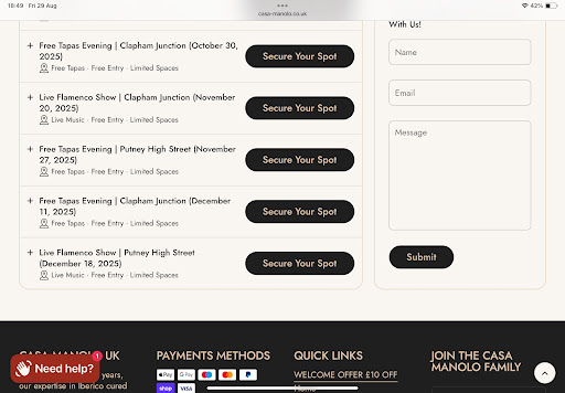 Read moreMy partner and I attended the 'Free Tapas' night on November 28th, looking forward to a great experience. While the food and the Casa Manolo Limited Edition wine were both excellent, unfortunately, our overall experience was marred by a few issues.