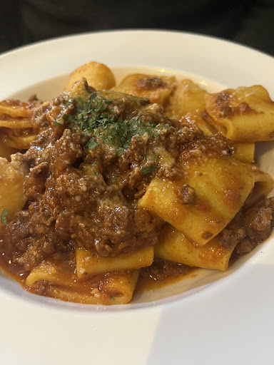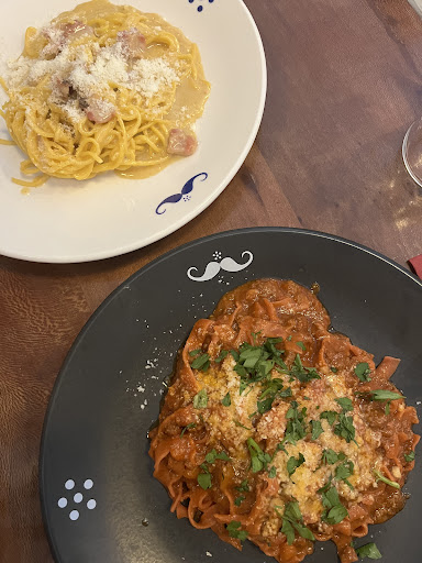 But! We waited 50 minutes for our food, and when it arrived it was unfortunately disappointing. We were seated downstairs and had only seen the waitress once since we ordered, so after 40 minutes or so I popped upstairs to ask about the food. I was abruptly told that, simply, that they were busy (the downstairs level was empty) and it became apparent that they had forgotten our food. We had ordered 3 pasta dishes so nothing that should take 50 mins. I went back downstairs and they brought us more olives while we waited, saying our food would be 2 mins. 10 minutes later the food arrived. For the seafood pasta dish, the pasta was undercooked (not al dente, simply undercooked) and the sausage tortelloni was bland in flavour and oily. The insides were an unappetising grey colour. We all agreed that at best the food was 'ok' but certainly nothing special.