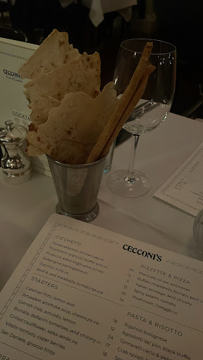 Had 8PM reservations at Cecconi’s last night. Restaurant was pretty empty, asked to sit in a corner booth and the hostess said there was a party of three reserving that spot but no one ever came the entire night we were there (we left around closing). Took them a while to come to our table to take our drinks orders. When they did come we ordered espresso martini and a vodka martini. Definitely regretted the espresso intake last night, heart was racing. Two is more than enough. The espresso martini was sooo good we ended up ordering seven of them. The vodka martini was very different compared to what we are used to; not bad but didn’t order again.