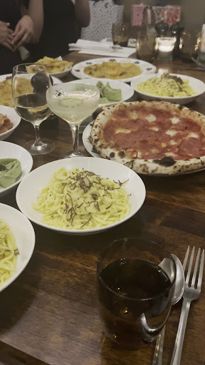 Read moreI understand a Friday night is a busy night, so food and service can be slower, but in this case it was just bad service. We had to wait 10 min for our booked table (which okay is not terrible), but it was particularly annoying because it then took so long before we could get anyone to come to us, even for tap water. Our waiter appeared finally, clearly pressed for time, we managed to quickly order. Our cocktails ended up arriving after our starters, and still no sign of table water until we flagged down the waiter once more for it. I know I'm sounding snobbish, but at 60 pounds a head I expect SUPERB service. We weren't checked back on even once the whole meal, and had someone join us at the table towards the end, and they weren't offered a drink or anything at all. The service can be summed up in "they took our order, delivered our food and took our payment", which is one step above a McDonalds, where you order the food yourself (and honestly I would have preferred it that way). Again, we could have called up a waiter, perhaps yanked them by the arm and not letting go as they run past, flailing around trying to cater to many tables more than they can handle each. We figured it would have taken 30 minutes to get any second drinks so we gave up and settled the bill. Super mid. On top of that, the food was not great, and I know that's personal, but pasta was overcooked, and at 26 pounds for a plate of pasta, I expect the best pasta of my life. The place is cool inside and has good atmosphere, but it is very loud. Yes I know, I'm outraging the management right now because they can't do much about the noise, but it doesn't make it...