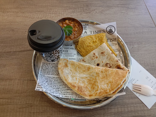For my breakfast choice, I ordered the Desi Breakfast which consists of a karak chaii (strong milky tea) masala omelette, a choice of either roti or paratha, a choice of curried daal (lentils), chana (chickpeas) or beans, extra toppings are optional.