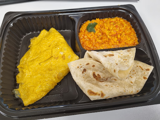 The roti was certainly not done in a tandoor and don't get me started on the flaccid mess of a one dimensional masala omelet .