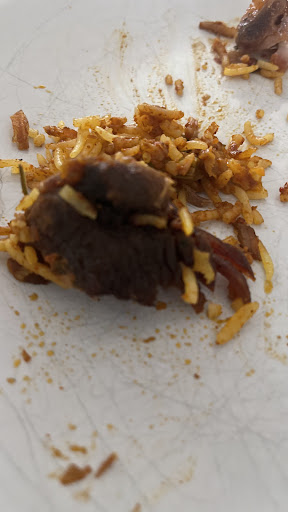 The biryani, as evidenced in the accompanying photograph, was overcooked to the point of being burnt, and while it contained an abundance of spices, it lacked the essential depth of flavor that characterizes this dish.