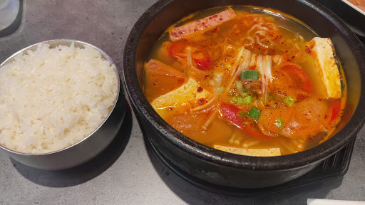 For the main,I had Budae Jjigae.It was packed with flavour and served in a small boiling pot with rice.The mix of bean sprouts,white mushrooms,tofu,spicy broth,sausage,and spam made it incredibly tasty and comforting.