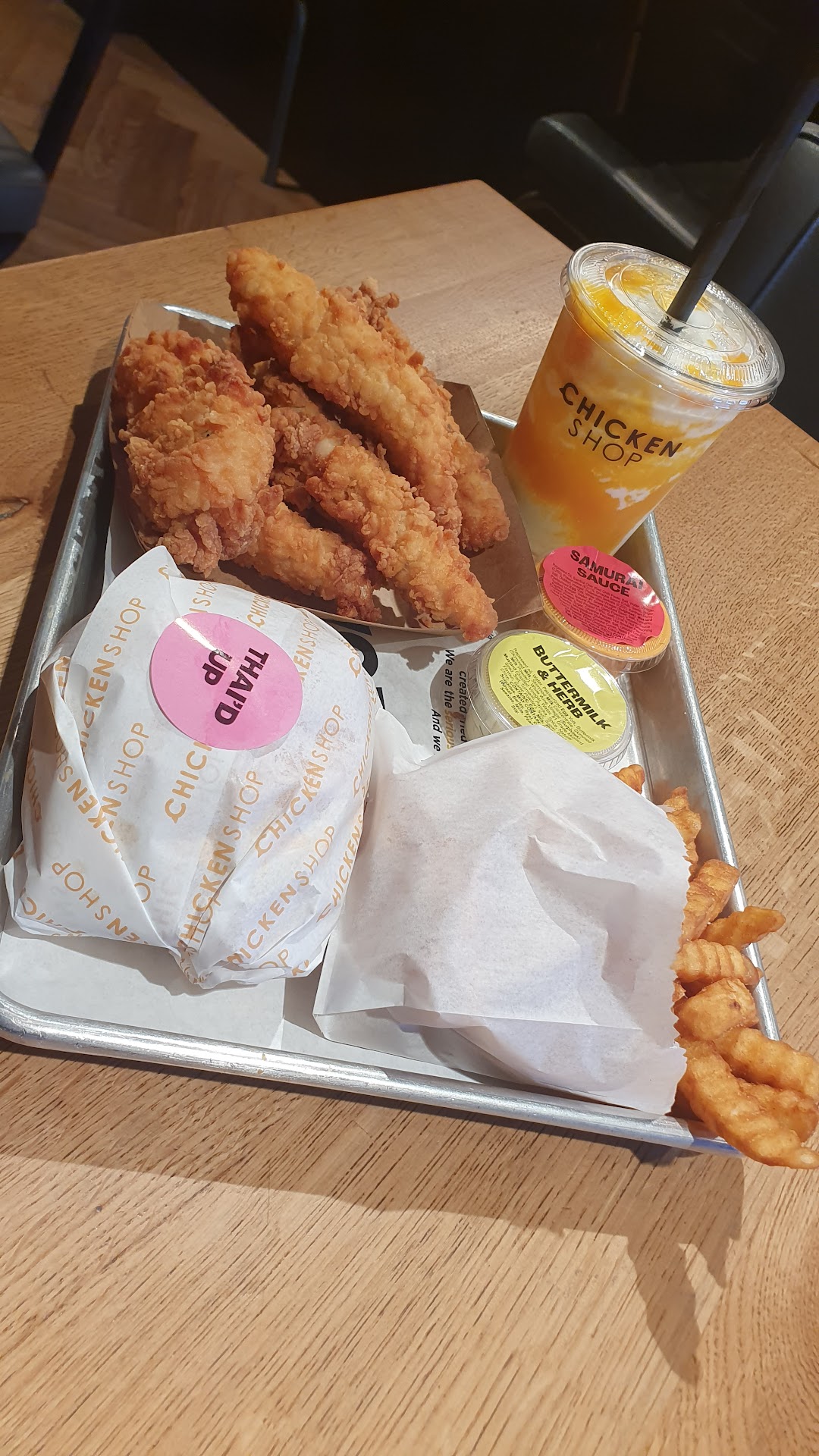 I went to try this place after seeing it on the socials and try their super spicy "volcano sauce". Immediately I walked in and was like FFS an autobot, (I prefer ordering over the counter to an actual person) but the staff (shout out to Saima) was more than happy to come over and walk me through my order on the screen. I wanted a burger meal, with like 4 tenders. Didn't really work out as they didn't even have the volcano sauce I came in for. I ended up with the Thai burger, chips, 6 tenders (as that was the least they did) and that coconut mango milkshake. Ended up paying £30 odd quid for a meal for one (being from the north, this is where my soul left me). The burger was alright, nothing special, the tenders were on point, bug and juicy was struggling to gobble 6 up, the chips were so n so, the coconut mango milkshake was bangin and the two sauces I did get (samurai and buttermilk) were spot on. Saima kept popping over every so often making sure I was cool (bless her). All on all, I liked it, was a bit disappointed with the fact this sauce they promote on socials wasn't available, but was happy with the food, portion size and Super Saima. Is a bit on the pricey side, imo, but somebody has to pay for the autobots. Most likely will visit again when I'm next...