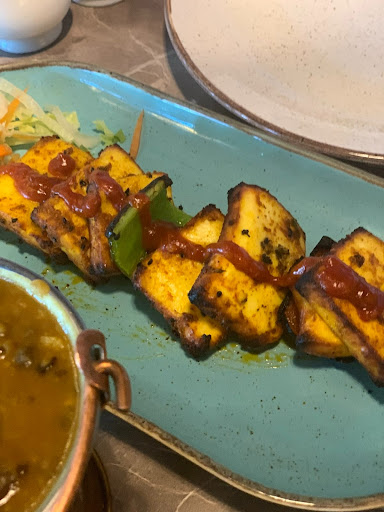 GOOD: Great waitress, Service, Tandoori Wings I heard were good (for non veg), Reasonable prices. Large range of dishes and lamb dishes looked okay. The brocolli was not tandoor cooked, it was cooked in a thick, red chinese style sauce like the mixed vegetable dish BAD: You wallk into a tiny dining area and see iniside an old, grubby and dated kitchen, old and filthy toilets. They only do roasted popadoms The drinks were expensive and mini versions of the cans and bottles (mixer sizes) Tiny bar Red food colouring in every dish! The Mushrooms and Vegetarian dishes were in a thick sauce and dripping in oil. The mixed grill had no lamb chops, small and red food colour everywhere Fried wings came out a burn red/brown The paneer was skinny and tastless Small portions of Dahl The chef is from another place up the road