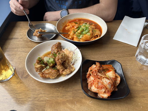 All the food was great, the Korean Fried Chicken tasted amazing but I wouldn't consider it true Korean Fried Chicken as it didn't have that famous crunchy outer later. It was still delicious though! The kimchi was perfectly flavoured for our tastes, not to pungent or spicy and paired well with our dishes. The toppoki was comforting and flavourful. The ginseng and rice stuffed chicken was unlike anything I've ever had! But in the best possible way. It was a whole baby chicken stuffed with sticky rice in a rich broth, I couldn't have had anything more comforting or nourishing if I tried. This dish was extremely satisfying and would highly recommend it to anyone wanting to try Korean food without the spicy kick, as this dish wasn't spicy at all. What it lacked in spice was more than made up for in flavour. The chicken itself was moreishly tender, the rice in the cavity had absorbed all the juices from the chicken, not to mention the garlic, ginseng and date-like fruit stuffed in there with it! To top it off it was presented in a hot stone boil still boiling as it arrived at my table.