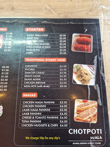 Read moreWe stumbled upon this place, when looking for something quick and small to eat. We have never had Bangladeshi Street food before, on first look the place doesn't look very appeasing, being a small area and the seats look bit worn out. The cashier was really helpful in explaining to us on what each item was. We thought let's just try it and not expecting much. It was so tasty, one of the best snacks we have had in quite awhile. We had the fushka, which is similar to pani puri but the fillings are different it had egg and carrot I believe. The sauce we poured in had quite a kick to it, both combined was just delicious and we weren't expecting so much in one portion! Also ordered the meat roll, being Tamil we have our own mutton roll which we always complain that most shops only has a few pieces of mutton and the rest is potato! But this meat roll was very generous with its portion of meat and the taste was good! Finally we had the lamb naga panini this was our favourite. It was spicy, filling and the combination with cheese. Anything with cheese we are happy. My fiancé ordered this but I had to keep asking for a cheeky bite because I enjoyed it so much! Highly recommend after a day of shopping to go check this place out. Even the mango lassi was rich and...