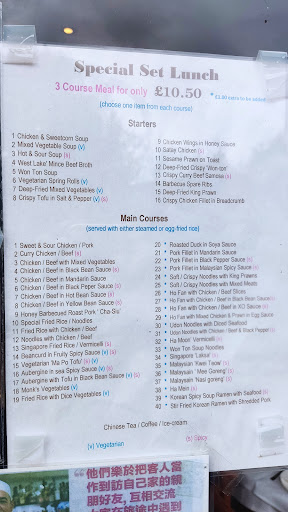 Read moreWe came to try the lunch time special. The lunch time special is £10.50 and I think you get 2 courses and tea included in the price. On the menu they add an extra £1 i now realise that is for the blue starred items on the menu where you have prawns and more expensive ingredients. They also showed ice cream, at the bottom of the menu so not sure if that was included but we so full after the 2 course we didn't enquire about the ice cream. We ordered a soup and fried prawns to start. I was impressed with the prawns they were tasty and came with a sweet and sour sauce. The hot and sour soup was good and had prawns and chicken and quite a few ingredients in it. For mains we ordered a laksa and some mixed meat crispy noodle. I was impressed with the ingredients and the quality of the dish. The waitress was lovely and friendly. She gave gave us extra plates and bowls so we could share our mains. She also topped up the tea with hot water when we finished the first pot. We will definitely do the lunch time special again, the waitress said it's available on the Saturday too so will come back on the weekend I'm sure. There was also a free car park close by, which made it easy go get to the...