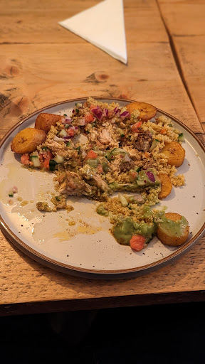 Had a lovely evening celebrating a birthday the platters were ample for sharing and we're tasty for a variety of palates. It would have been nice to have a divider on the platter as if I don't eat meat, I would not have been as enthralled that the chicken was beside the other items. The saltfish fritters were absolutely divine. Music by DJ Ian was on point, everyone was up and dancing the entire evening. Location if loos was a bit off putting when you have individuals that do not close doors and the loo is then visible from the table where I was sat (Thankfully I had eaten already). All in all a good night out. Staff did not interact in a friendly way, but neither were they u pleasant They just...