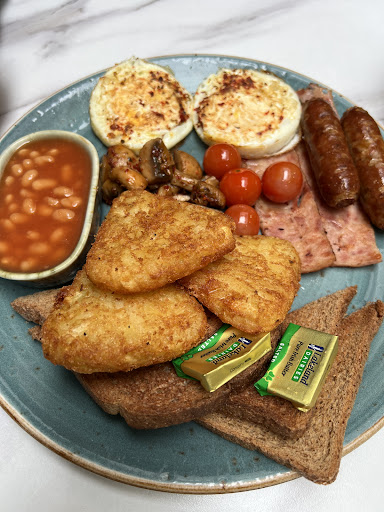 Read moreI ordered the full cobbler which consists of... 2x beef sausages, 2x turkey rashers, eggs, toast, beans, 2x hashbrowns, mushrooms and 🍅's. This breakfast is the best breakfast I've ever had in the UK. It was absolutely faultless 👏🏼👏🏼. The beef sausages are the best ones I've ever had because it was packed full of flavour and it did not taste dry at all. It was cooked perfectly and so were the turkey rashers. They, too, are the best ones I've ever had because it was so meaty and seasoned so well! 👌🏼👌🏼. The scrambled eggs were absolutely delicious and the hashbrowns had way more substance than other hashbrowns and even the mushrooms were seasoned beautifully! I absolutely loved it as well as the cherry tomatoes, (just wish they gave more beans🤣). For dessert, I ordered the churros with dulche de leche sauce & icecream. The churros were overcooked but still edible. The aroma of the dulche de leche sauce was absolutely irresistible with the ice cream and if it wasn't for this, I don't think my sis & I would have finished the churros without it🤤. The coffee was standard but the strawberry mojito was very refreshing & I really enjoyed it👌🏼. Overall, their breakfast is amazing and I can see why there is sucha big hype over it😍 because it's absolutely worth it. The cafe itself is very small but luckily, we didn't have to wait that long as we sat outside but if you were to visit over the weekend, prepare to wait 45 minutes or so. The service was lovely and efficient. They were attentive and polite. It is quite far and I hope they...