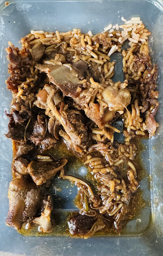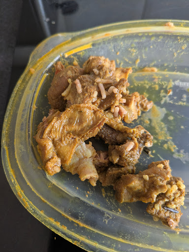 The rice was overcooked and in some places clumped together in large solids rice blocks. The curried goat was circa 70% bones! Never in all my life eating curried goat have I experienced this before. The prawns rubbery and not as I would have imagined, plus their intestines were left in and black (which means their full) I'm not a fan of this gritty to the bite type of preparation.