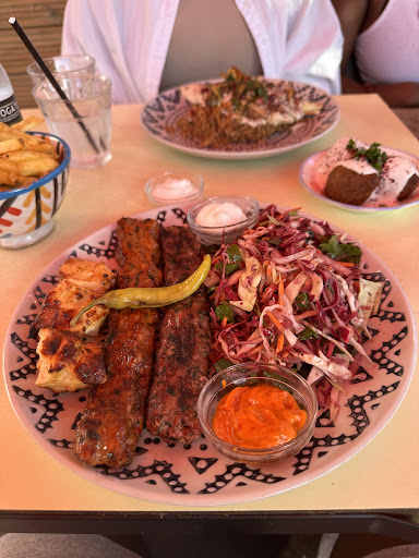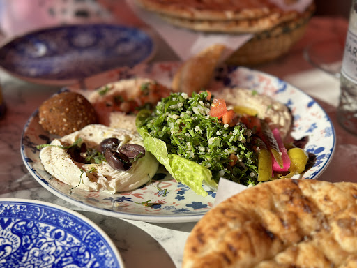 Read moreI went the previous week with 2 friends, and we all enjoyed it, so I was glad to be able to come again this time with family. This time we tried the Meze platter and I had halloumi and salad as well. (I shouldn't have done, really - but every dish looks so exciting and I have come to know that they are all spiced exactly to my taste, not too spicy, not too salty - just right!) The meze platter was intended for 2 but quite enough for 3 with baba ganoush, (aubergine dip), labna (strained yoghurt), houmous ( chick peas and tahini), 2 falafel (a ball of grains), and 2 pastries filled with cheese I think - feta perhaps - light, crisp and a delicious mouthful)! My halloumi salad was bulgar wheat and crisp squares of fried halloumi with salad- all melt in the mouth and mixed with such tasty sauces and dressings. This is the first time for me that I didn't even look for extra salt and black pepper, it was all just right!