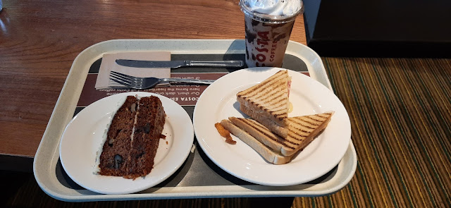 The food is oke but expencive, I got a bit of a rushed feeling. I had the tosti, carrot cake and the cold drink with the chocolate. You get the option to eat there or take it away, for eating there is not much space because it is the lobby of the hotel. Specialy around 3pm there is not much sitting room because of all the people waiting to check in. When in need of a lunch when you are at the hotel it is fine. These 3 items were...