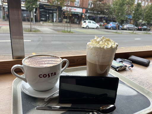 27.10.21 - called here today with a friend, the grumpy female assistant now appears to be acting as barista (possibly to limit her contact with customers?). However, that hasn't quite worked, she still managed to grumpily order my friend to put her coffee down so that she could arrange the cup holder - it were as if she was speaking to a five year old child, rather than a paying customer! The gentleman working behind the counter however, was very polite and curteous - thank-you. Just a note - neither servers were wearing face-coverings, despite dispensing food and beverages to customers. It may at the moment not be obligatory to wear face coverings, but I don't find it confidence inspiring when staff serving the public food and drink choose not to. 23.07.21 - I'm writing a update to my previous review, below. Unfortunately the coffee machine in the adjacent M&S remains out of action, so I thought I'd give the Costa another try. I really wish I hadn't - the weak coffee persists, but even worse than this is the negative attitude of one of the servers. I could only partially see her name tag - Apana . . ? Store Manager. She really needs a course in customer care; ask for anything slightly different, e.g. extra hot, and you are met with a pained, grumpy expression, as though she is doing you a favour rather than you being a customer paying for a product. I definitely won't be going there again! It's a shame, as the other server, a younger woman, is very pleasant and helpful.