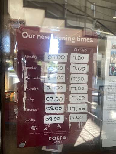 Read moreTerrible service, they are never open at the times stated on the door always late at opening and there always seems to be a problem with a staff member or it’s effort in doing their jobs. I have attended here for a while now but I am appalled by the attitudes of the staff. I was waiting by the front door for a member of staff to let me in as the front door was locked when they should have been opened and rather than coming to the door to apologise or explain why they were not open the lady decided to shout at me from behind the counter and I could barely understand what she was saying through the glass and her colleague was standing next to her laughing. This is below costa coffee standards and a little customer service training is required, if you want a coffee without the hassle go subway next door as I have...