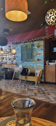 Pros: The restaurant is situated in a lovely area Cocktails were ok Jerk chicken and wings were ok