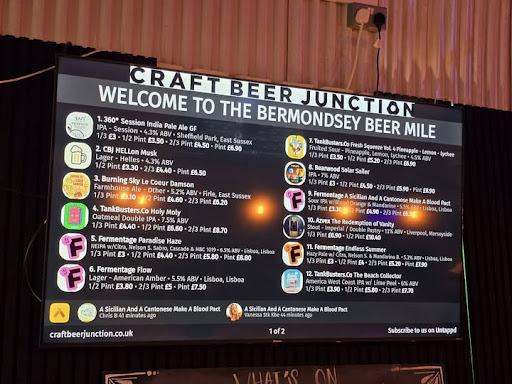 Ā Ā Ā Read moreGreat place on the Bermondsey Beer Mile - one of handful of non-breweries. Decent selection of beers (12 taps) and an Untappd Verified Venue. Interesting to see 3 Portuguese beers on tap. Would have liked to see a stout at less than 7.5% though (and, therefore, a measure of more than 2/3rds of a pint). It was busy (summertime Saturday evening) but not cripplingly so and it has a reasonable quantity of outside space. Another stop on my glacially slow pub crawl along the mile where places are opening and then closing again before I even have the chance to visit. I actually thought I'd been before - but seemingly not - so familiar did it feel. Of course, everyone is turfed inside at whatever time of the evening (maybe 22:00) but that's true of everywhere along here (and pretty much everywhere, everywhere to be...