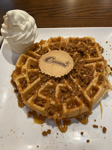 How is this place still open??? I worked across the road when this place opened and every friday/saturday night is was heaving with people so, naturally I expected it to be pretty busy when I went there today. To my surprise, there was hardly anyone in there. I ordered as soon as I got there which was just a milkshake and a waffle to take away. I ended up waiting 30 minutes for my order which doesn't seem too bad in comparison to some of these reviews. Throughout my waiting time, I listened to every member of staff in there complain about how much they hated their job, point blank refuse to stay any longer than they needed to, along with a debate on who was working what hours the next day. One of the members of staff even said before she left that she's coming in an hour later than she was supposed to thus, creating a whole new debate/argument about her. I know what it's like to be in the retail food sector and sometimes it can be tough but never would I even think to have this type of conversation in front of customers. DON'T even get me started on the lack of COVID PPE and just overall cleanliness. I witnessed one of the members of staff, use the cloth used to wipe the sides down on a plate that they then served to a customer who was eating in. Another member of staff started making the food with no gloves on, picked up something that was hot and pretty much threw it on top of this person's waffle. There was a girl who didn't have a clue what she was doing when it came to organising deliveries for just eat/deliveroo who looked confused the whole time and was just rude. With that being said, the waffle (when I finally got it!) was actually pretty good. Something definitely needs to be done about the staff though... shambolic is an...