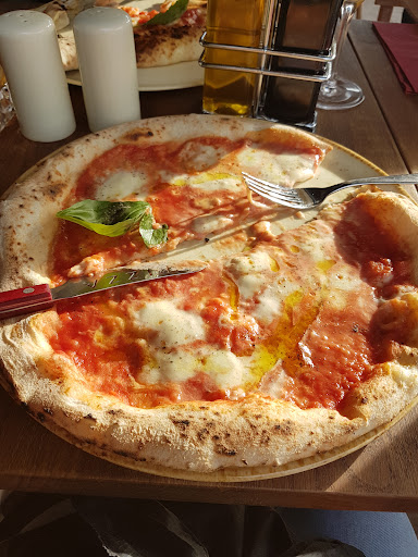 Pizza was fantastic, crust was lightly yet evenly cooked, Italian base was very thin and had a stone fired taste to it that you cannot get in an oven BUT Service was terrible, I arrived with my lady and the male waiter was hovering around our table about 15 seconds trying to push drinks on us, desperately trying to make eye contact with my lady to ask her rather than me when I said 'just tap water please' My lady was noticeably uncomfortable and looked to me to remove him, to which I shot a glance at him to say 'what are you doing?! ' I said 'that will be all thank you' and he left The man looked Italian in his late 30's His English was poor and in terms of service, he is kind but a little creepy