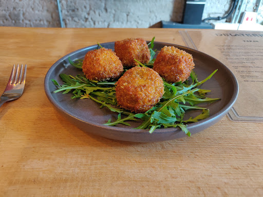 We ordered the Truffle turkey with eggs and mushrooms and the Spanish Tortilla. The turkey dish was so delicious that my son who doesn't like mushroom ate it all! The pan tomate was really fresh and garlicky and a great compliment to the Spanish Tortilla. Really excellent food. Portions are on the large side. Vegan options available and they even make their own vegan cheese!